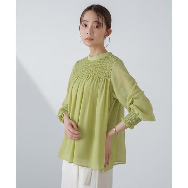 ・フロントに入ったシャーリングデザインが印象的なブラウス