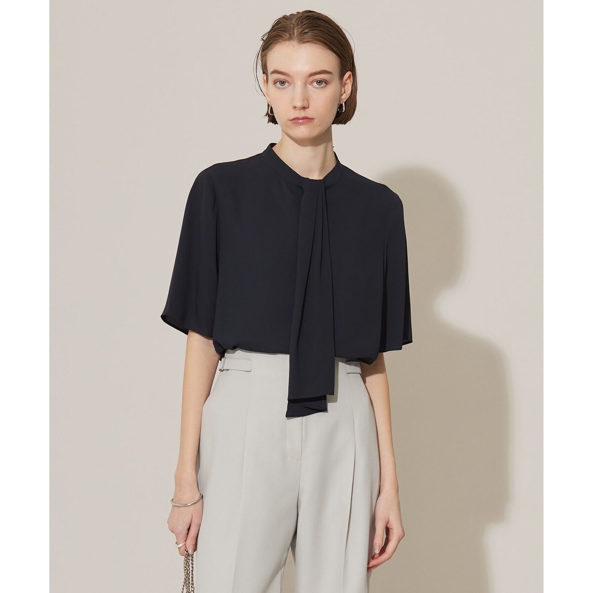 ラクな着心地ときちんと感を両立、通勤にもセレモニーにも活躍するスカーフタイブラウス