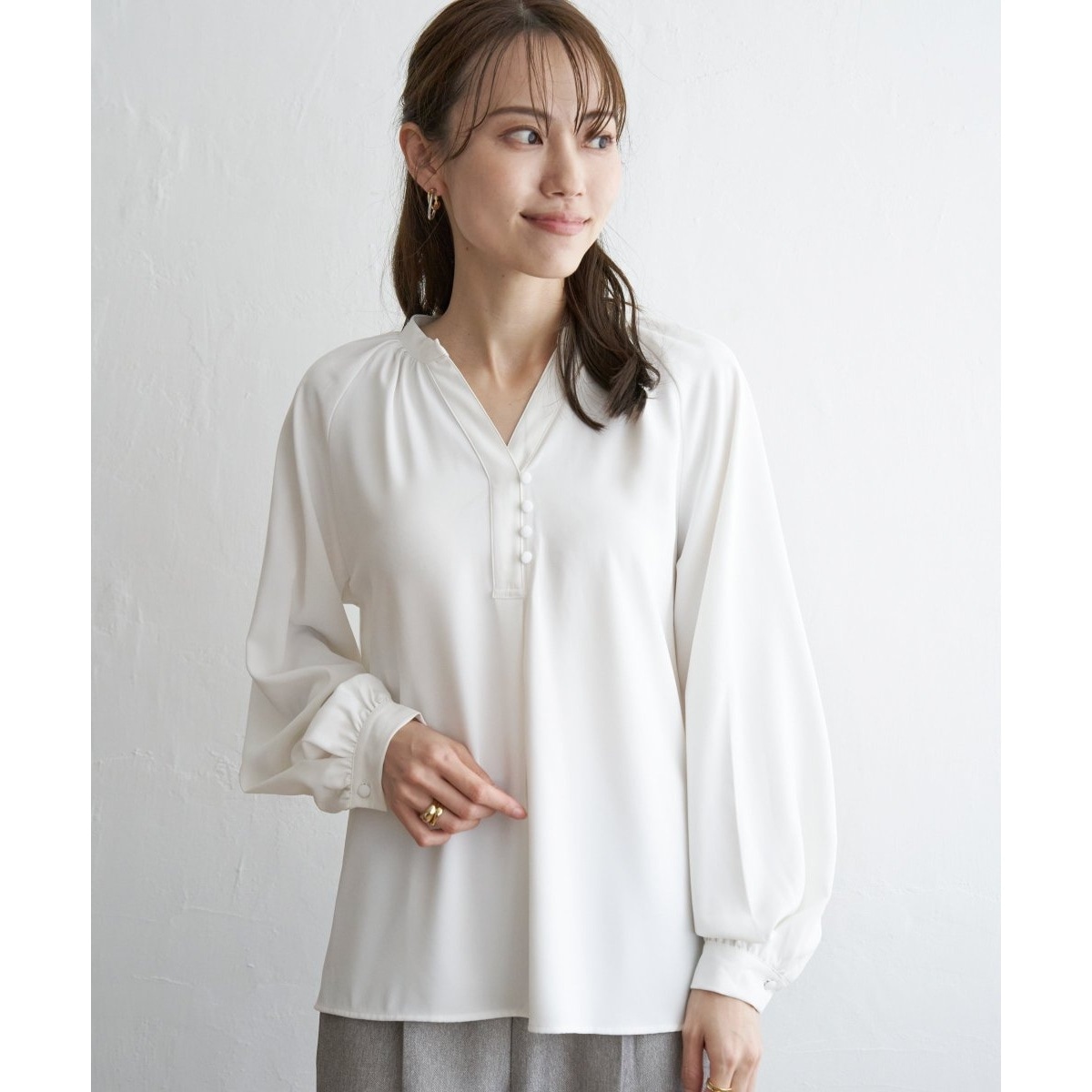 IKKA LOUNGEブラウス シャツ クルミボタンスキッパーブラウス レディース