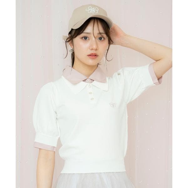 シャツブラウス×ポロニットのレイヤード風トップス【Design】・カジュアルテイストなポロシャツに、シャツ襟&カフスをドッキングしたプルオーバー。・ダブルカラーデザインと配色使いできちんと感も兼ね備えた仕上がり♪・胸元にはロゴ刺繍をあしらい、フォーマルなエッセンスもプラスしました!・フェミニンなフレアスカートやチュールスカートとのコーディネートはもちろん、デニムパンツを合わせてカジュアルな着こなしも◎・袖にはボリュームをもたせることで女性らしいフェミニン感も表現してくれます。・ウエストインしやすいコンパクトな着丈感のアイテムです。・フロントボタン仕様。【Fabic】・薄手で軽い着心地のニット生地を使用。・シャツ部分は程よくハリ感のある生地を使用。・ご自宅でお手入れが出来るのも嬉しいポイント♪・ホワイト、ピンク、グレー、ネイビーの4色展開となります。【Care】手洗い可能
