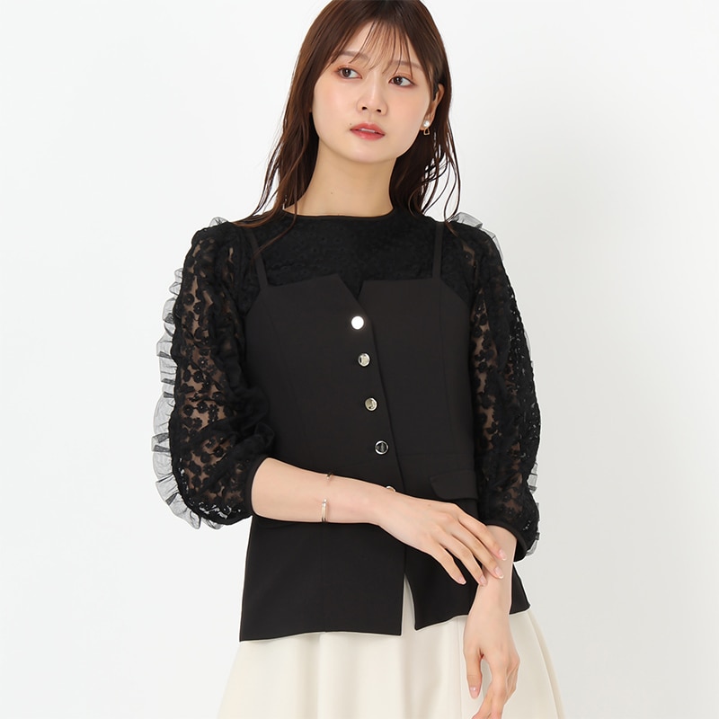 縦に並んだボタンがスタイリングのアクセントになるキャミビスチェ。バックにシャーリングを施すことで、フィット感のある着心地を実現します。合わせるカットソーによって印象の変化を楽しめるアイテムです。■fabric透け感[無し]裏地[すべて有り]伸縮性[無し]生地の厚さ[普通]ポケット[有り]