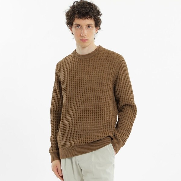 クルーネックニット/セーター/50/ウール/ネイビー/ワッフルニット/171/57121 14225