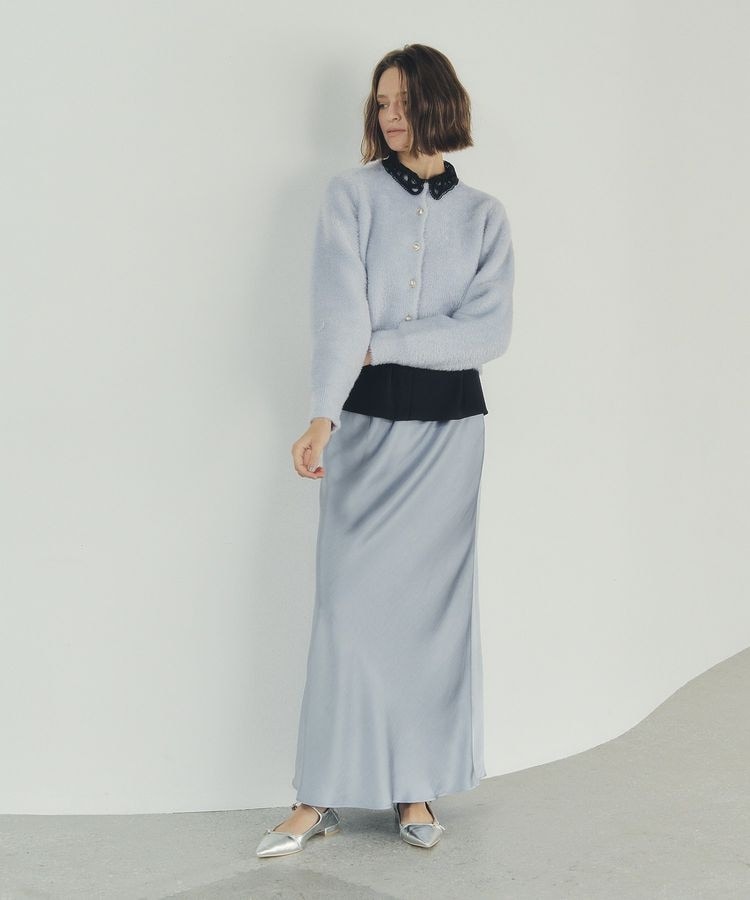 表情のある光沢サテン生地を使用したレディな雰囲気のスカート。