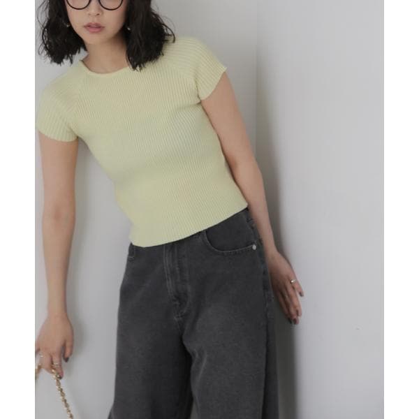 デイリーユースにぴったりな万能リブニット。二の腕を隠しつつ、夏に着やすいフレンチスリーブに仕上げました。ラグランスリーブの切り替えなので、肩まわりがすっきり馴じんでくれるのも嬉しい。前はVネック、後ろはクルーネックで仕上げており、前後2wayで楽しめるデザインです。ハイゲージのリブ編みで、キックバック(伸びたら元に戻る)もあります。ベーシックなデザインは、一枚も持っていると大人カジュアルにもフェミニンな着こなしにも活躍できます。※モデルの着用画像の場合、光の当たり具合により、実際の色味と異なって見えることがございます。色味は、商品単体の画像をご参照ください。