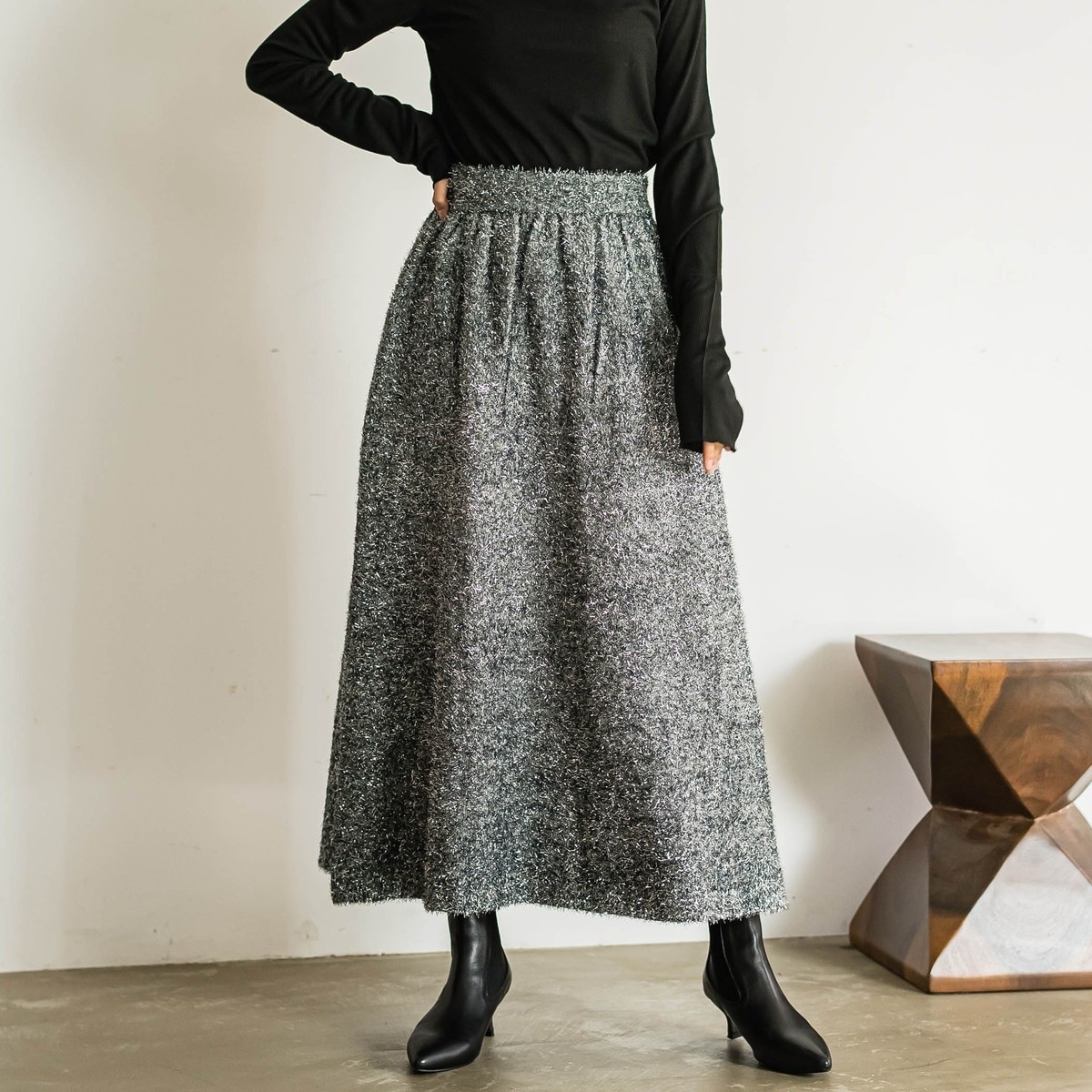 メイソングレイ ラメシャギーニットフレアスカート 手洗い可能 シルバー M