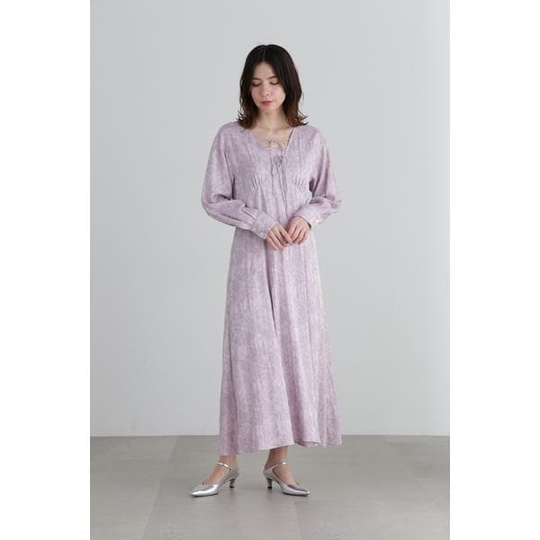 日本の生地産地、桐生市の生地屋さんで仕立てたオリジナルのジャガードワンピース程よい落ち感のあるレーヨンコットンキュプラの素材を使用し、ヴィンテージの花柄から着想を得た、繊細なフラワー柄を表現しています。襟ぐりは深めに開けたVネックに華奢なダブルリボン付き。付属でインナーキャミワンピースがセットされており、深めの胸元をカバーしつつ見せるおしゃれも手に入るよう、一部Vネックに合わせてワンピースと同じ生地を使用しています。ロングスリーブなので一枚できちんと感を演出し、冬はニットカーディガンなどを羽織っていただくと長いシーズン着用いただけます。