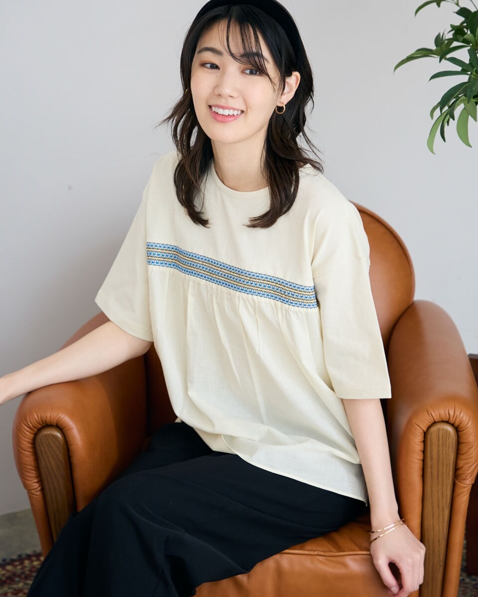 【大きいサイズ】布帛プリント切り替えTシャツ