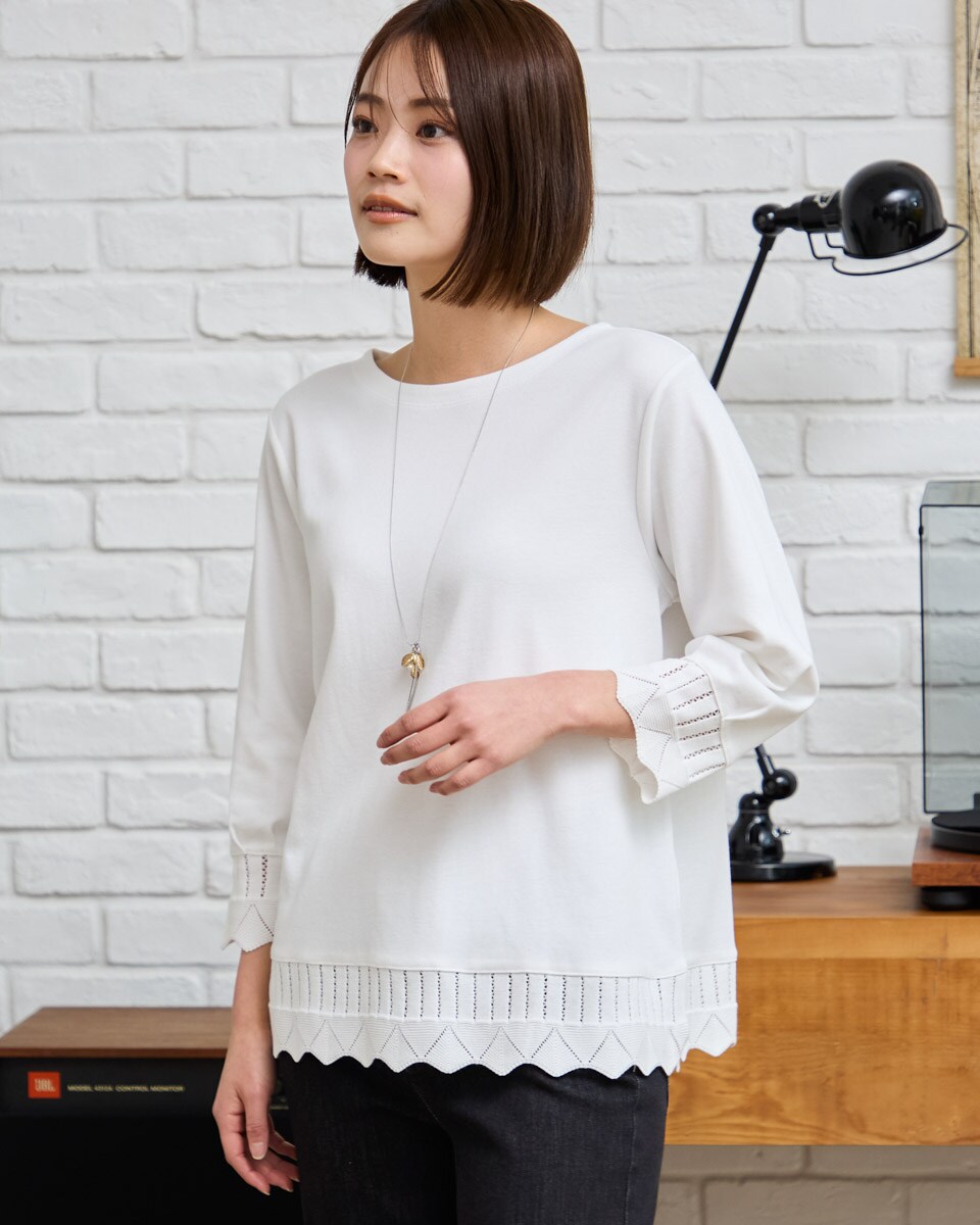 タグ付き PLST レディースM プラステ 長袖 ニット 背中シフォン切替 プルオーバー ラベンダー 未使用新品 送料無料