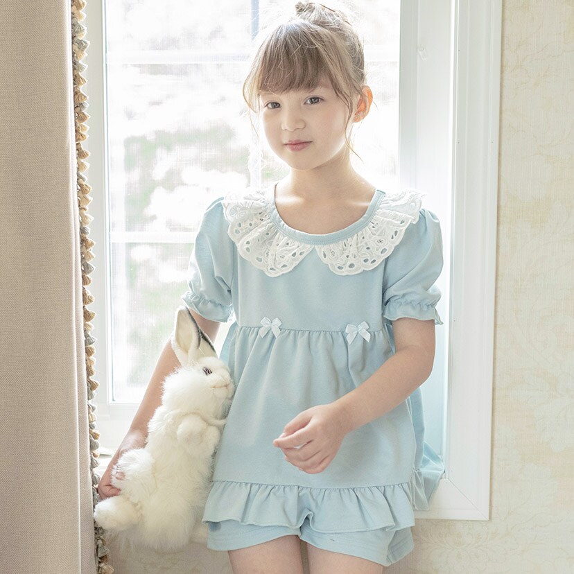 やわらか裏毛の半袖ヨークレースネグリジェ