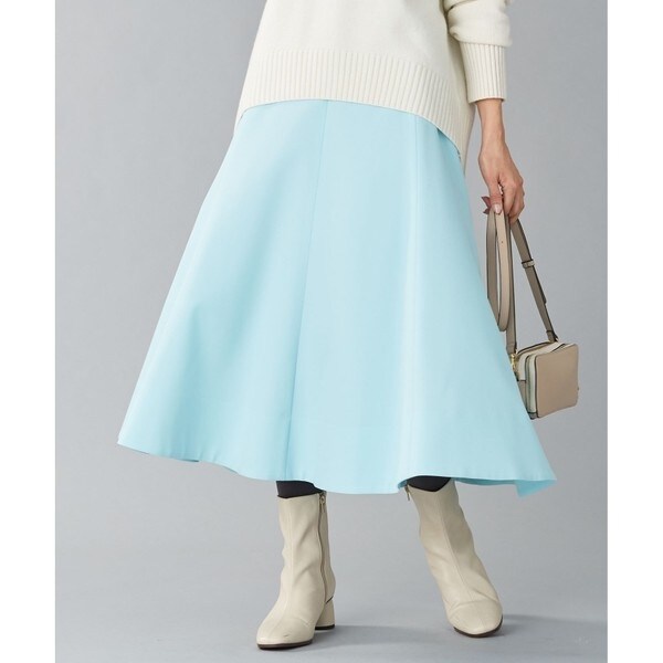 ■デザイン ややハイウェストで、裾にかけてのフレアがとても美しいシルエットのスカートです。裾はサークルに広がるようなイメージで仕立てました。腰まわりはすきっりとしたシルエットなのでリラクシーなトップスとの相性も良いです。後ろがゴム仕様になった着心地も大切にしたスカートです。長すぎない絶妙な丈感で着るだけで一気にコーデを女性らしい雰囲気にしてくれます。コーデをパッと明るくしてくれるアイボリー(#002)、スカイブルー(#072)と甘すぎない花柄のピンク系(#602)、ブラック系(#605)の4色展開です。