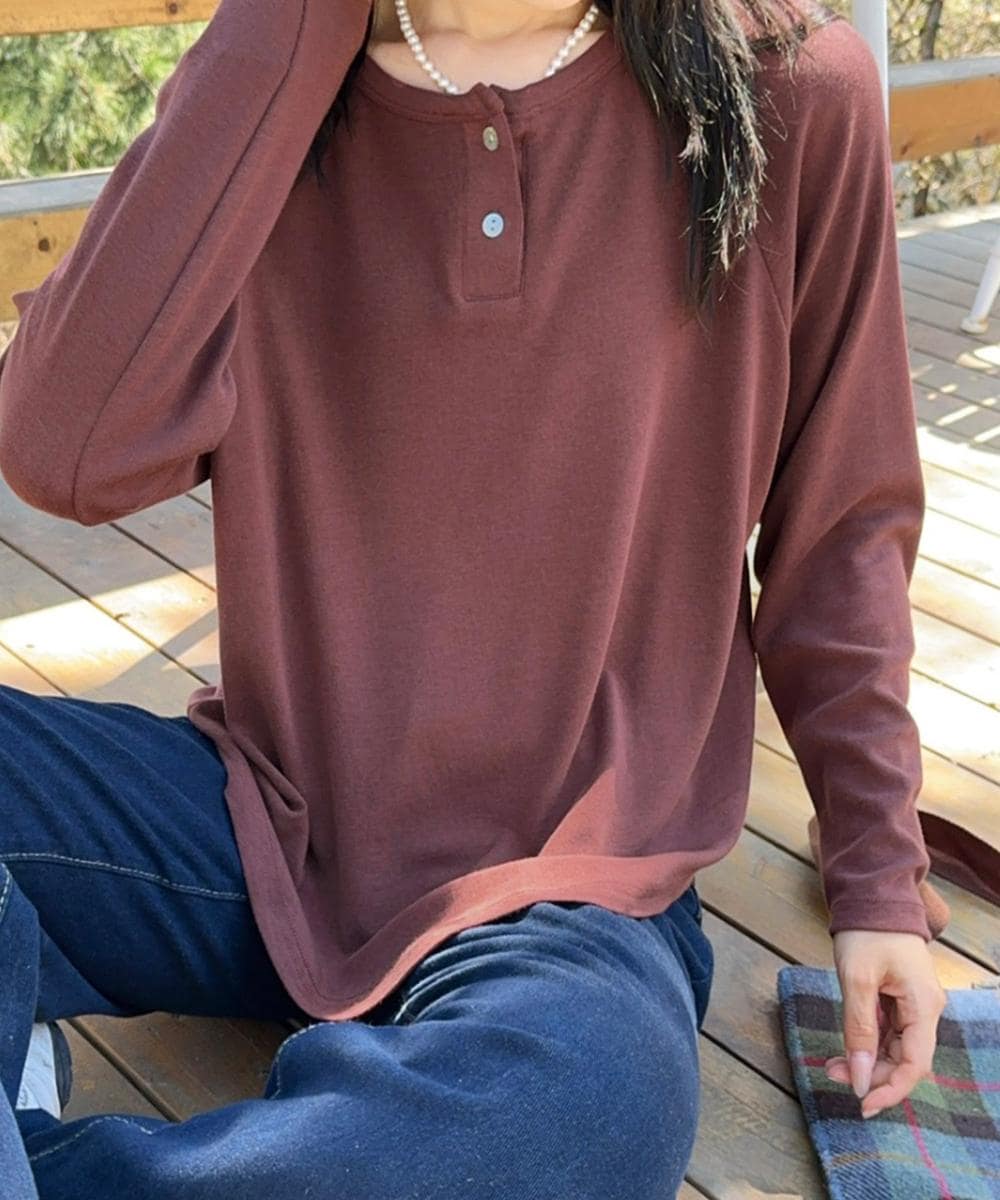 ヘンリーネックのボタンデザインが特徴の長袖Tシャツ。シンプルでありながら、首元のディテールがアクセントとなり、カジュアルでありながらもおしゃれな印象を与えます。ゆったりとしたシルエットで快適に着こなせるアイテムです。