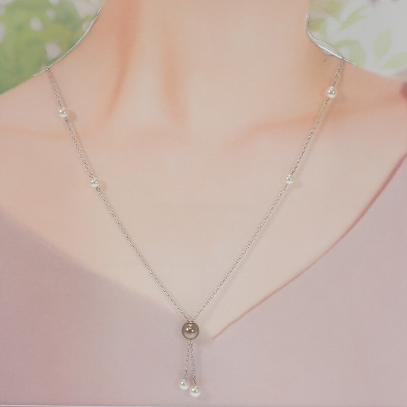 大小の上質なアコヤ真珠が優雅なバランスを生み出し、胸元にエレガンスな雰囲気を纏わせます。