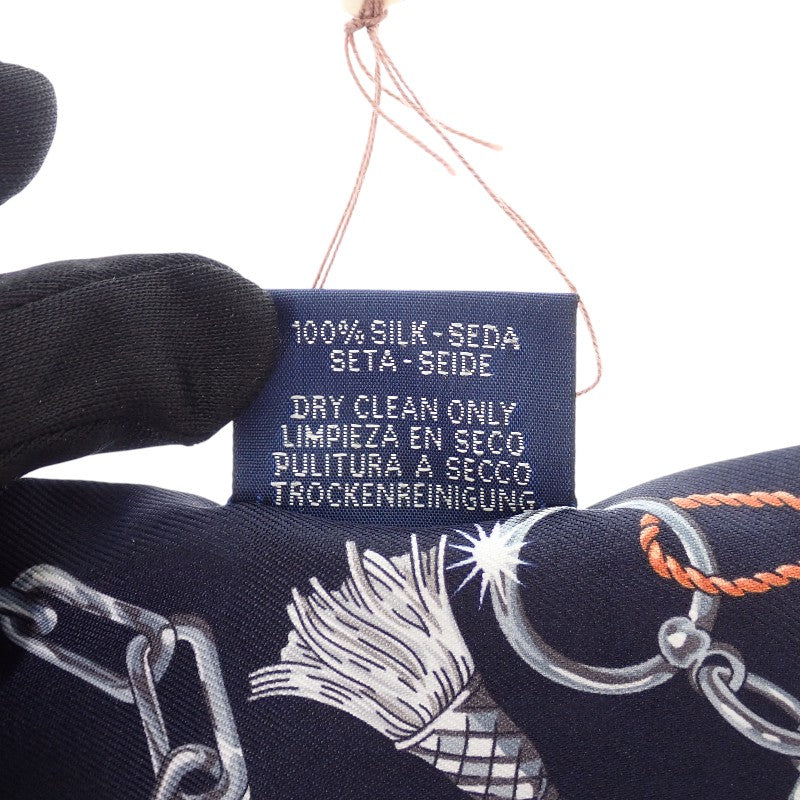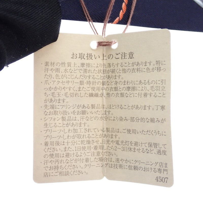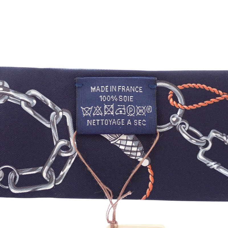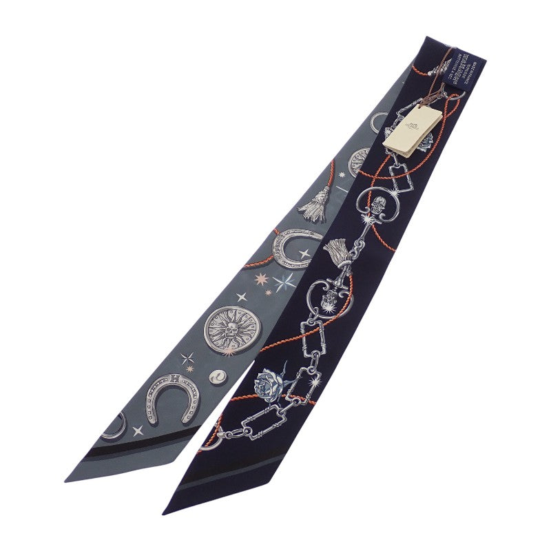 シックなグレーとネイビーを基調に、ホースシューやタッセルが華やかに描かれた印象的な一本です。シルク100%素材ならではのなめらかな質感と上品な光沢が装いを格上げしてくれます。細長いフォルムはアレンジ自在で、コーディネートに軽やかな動きとアクセントを添えます。