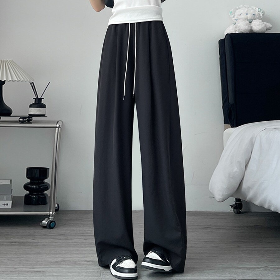 グレーハイウエストルーズワイドレッグストレートカットロングパンツ