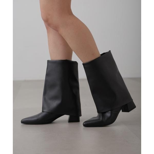 ミドル丈ブーツにレッグカバーをレイヤードした2wayデザインのショートブーツ。程よいハリとツヤ感のスムースフェイクレザーを使用。レッグカバーを外すとシンプルなブーツとしても履けるデザインです。※モデルの着用画像の場合、光の当たり具合により、実際の色味と異なって見えることがございます。色味は、商品単体の画像をご参照ください。