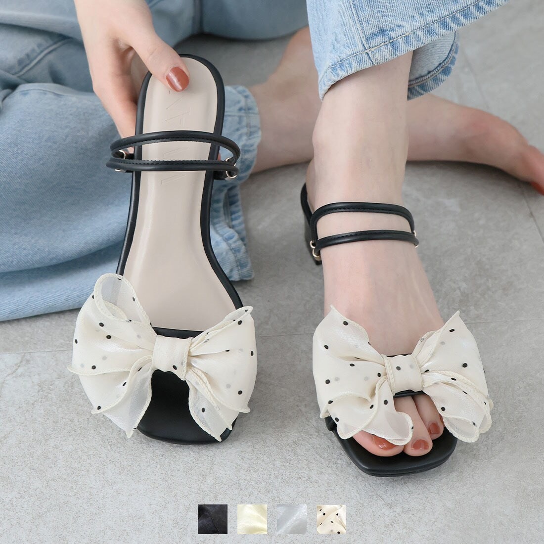 ・シアーリボンが目を引く2WAYストラップミュールサンダル!
