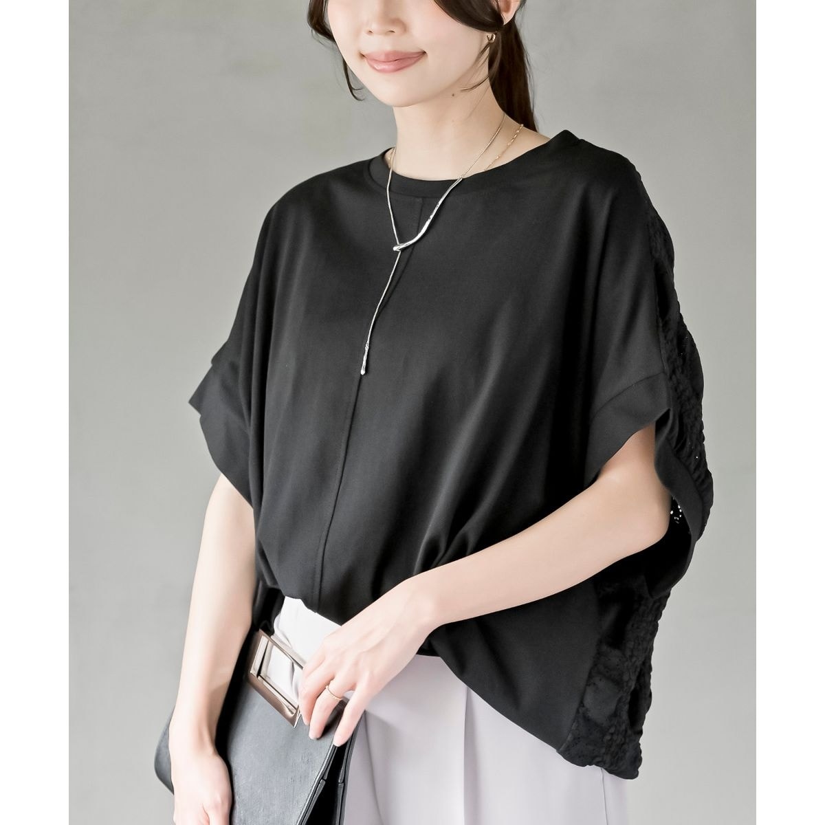 ◆レース切替 フレンチスリーブワイドブラウス