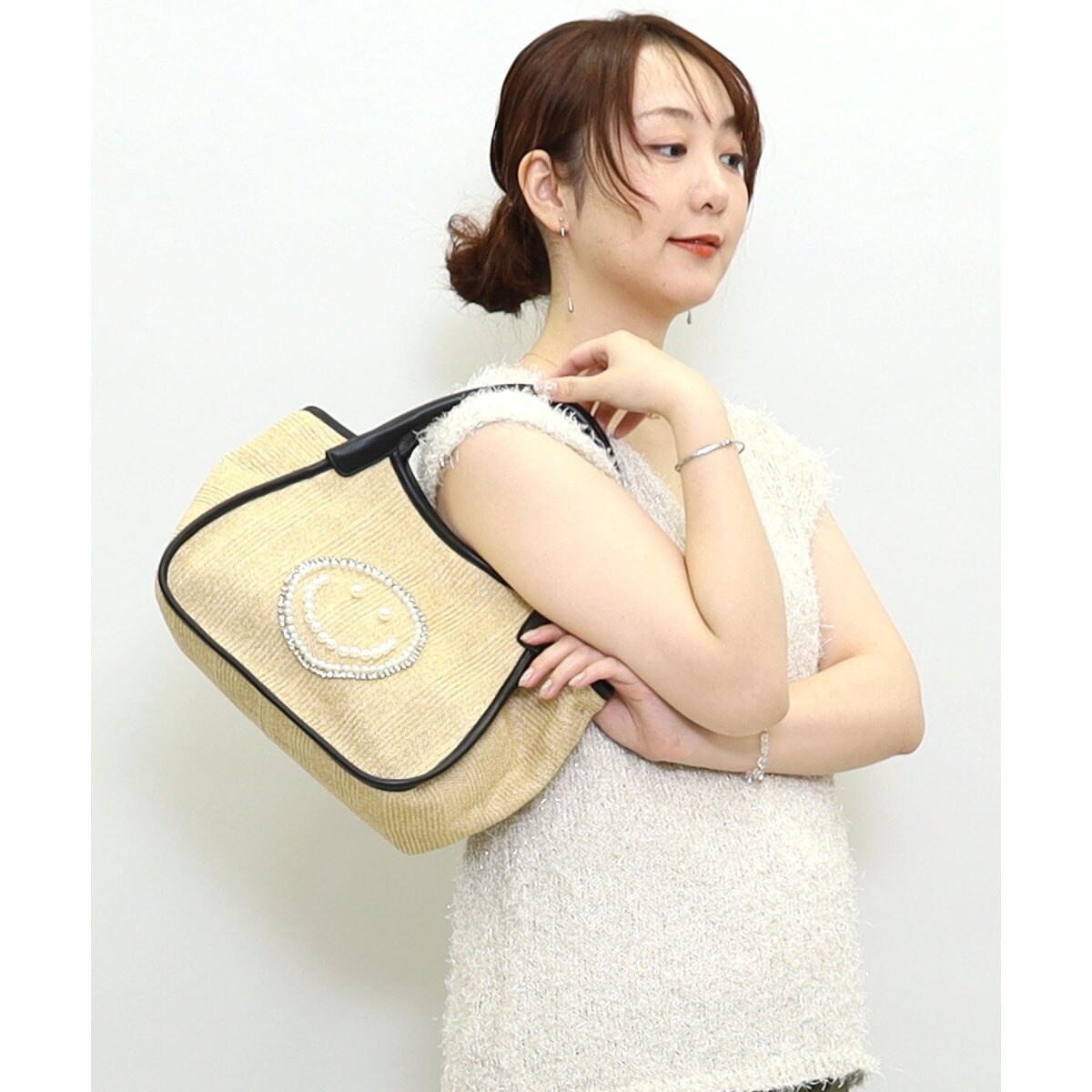 きらりと光るビジューとパールのSMILEYが目を引くトートバッグ