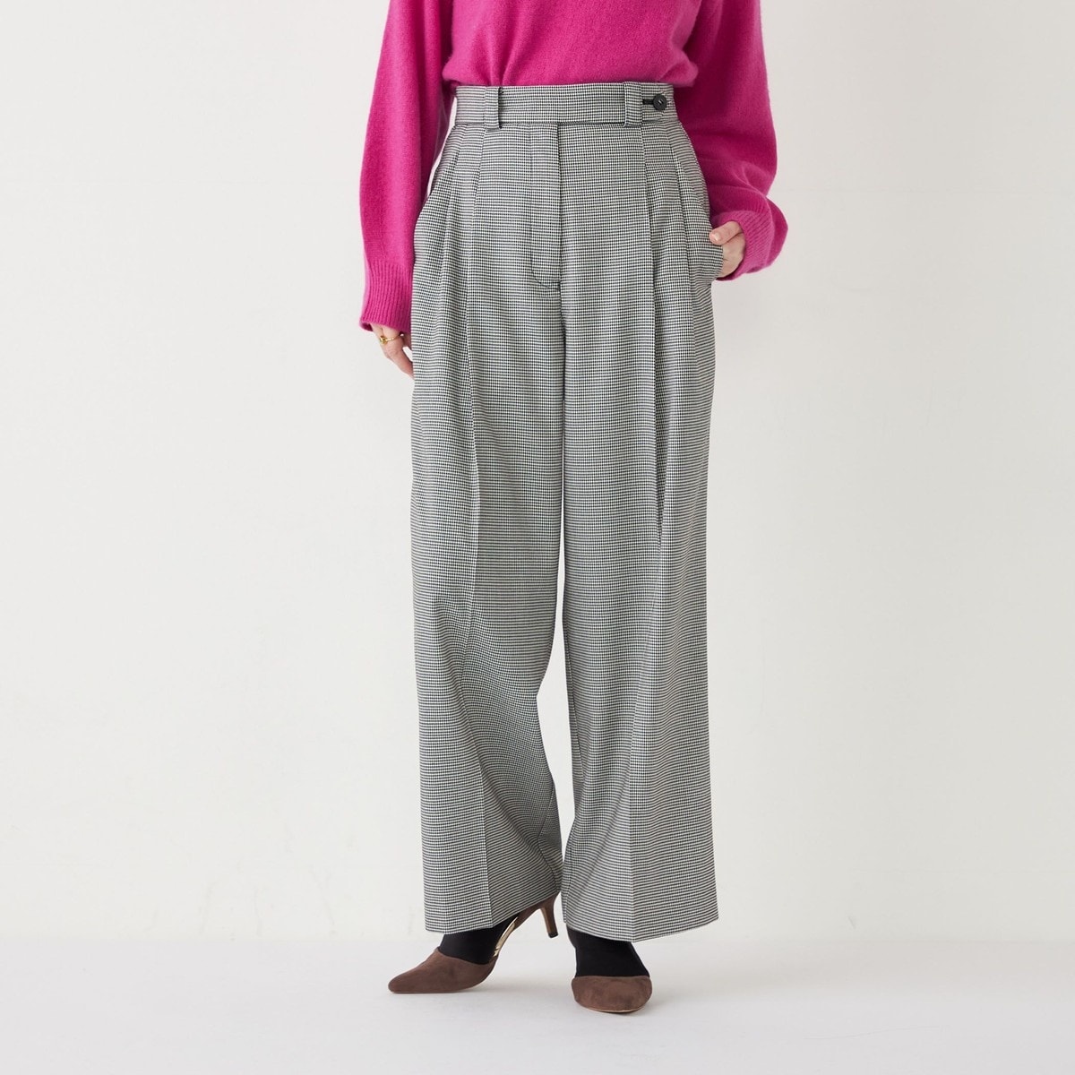 マニッシュな印象の2タックパンツ。