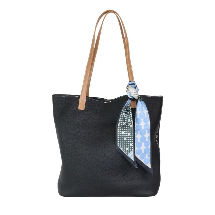 ブラックレザートートバッグ Hロゴ スカーフ、チャーム付き 2way