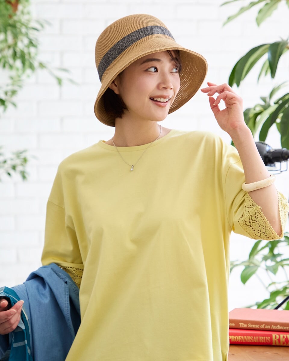 SHIPS any◆透かし編み ペーパー バケットハット キャメル