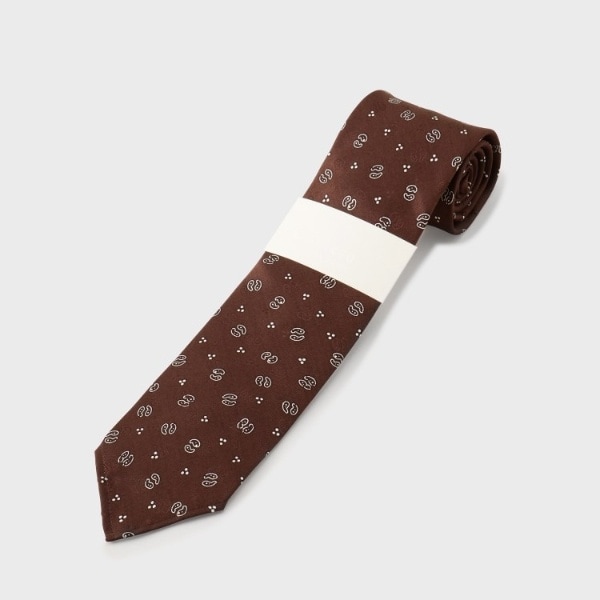 アーカイブのネクタイからインスパイアされた、洗練されたジャガードストライプのクレリックタイと、華やかなペイズリーのジャカードプリントネクタイ。