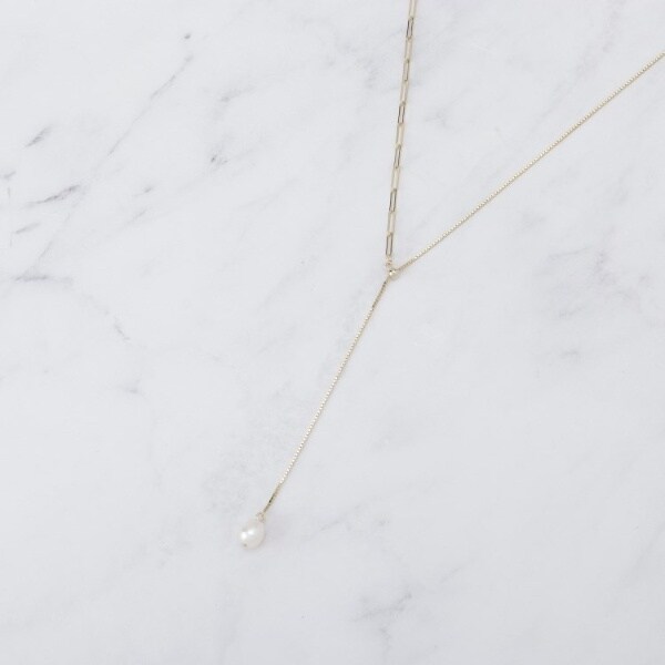 淡水パールを使用したエレガントなY字ネックレス。
