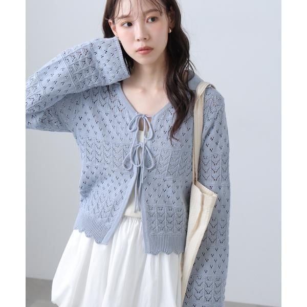 acro 透かし編みニットカーディガン アイボリー