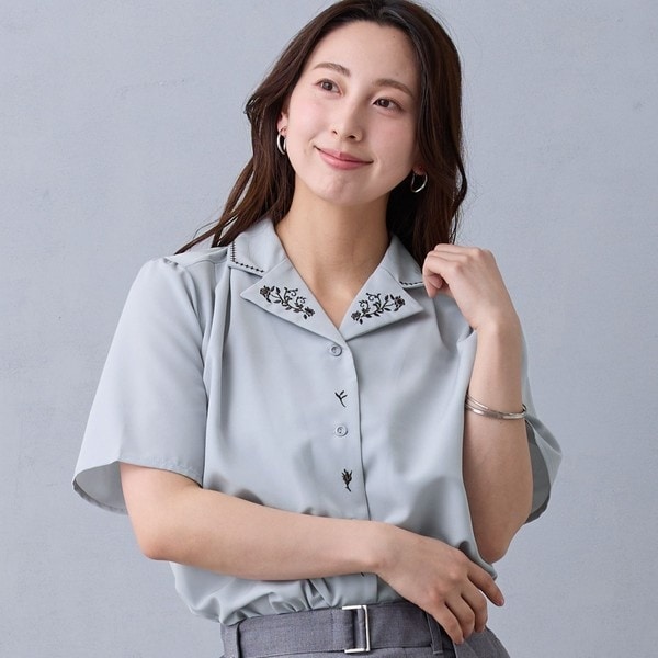衿と前立てに施された刺繍がクラシカルなブラウスが登場。