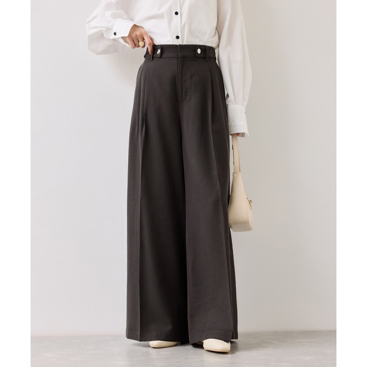 ・ウエストのメタル釦がポイントに。ベルトなしでも決まるワイドパンツです