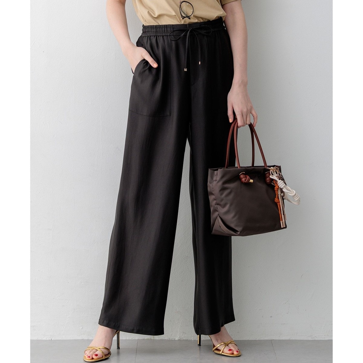 大人の抜け感を演出する、上品な光沢の万能イージーパンツ