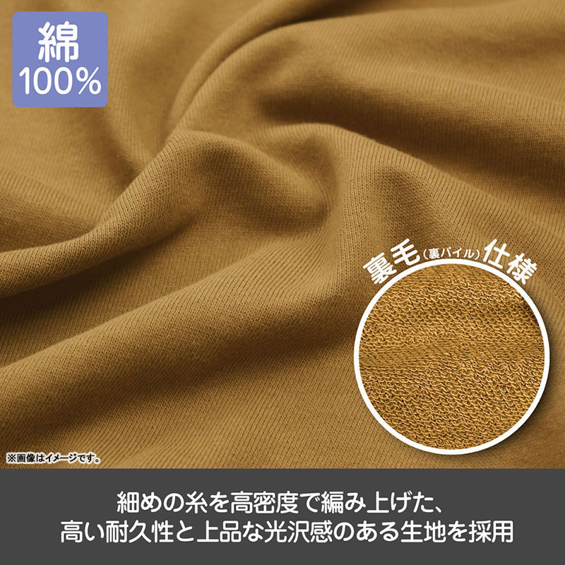・裏地は裏毛(裏パイル)仕様で、吸水性・吸湿性に優れているので、長時間着用しても快適。