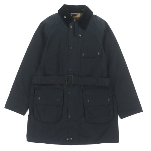 極美品△Barbour バブアー 2102025 BURGHLEY BY MALLALIEUS 襟コーデュロイ ウール100% ロング コート ネイビー 38 正規品 メンズ オススメ◎【中古】