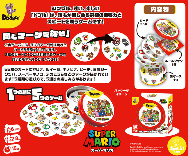全てのカードは他のカードとたった1つだけ共通するマークが描かれており、それを探すのが目的です。