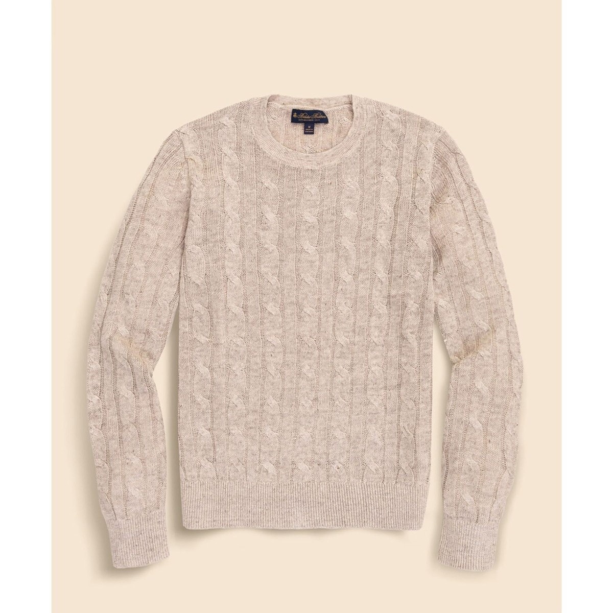 清涼感のあるリネン素材を使用した、ケーブル編みのサマーセーター