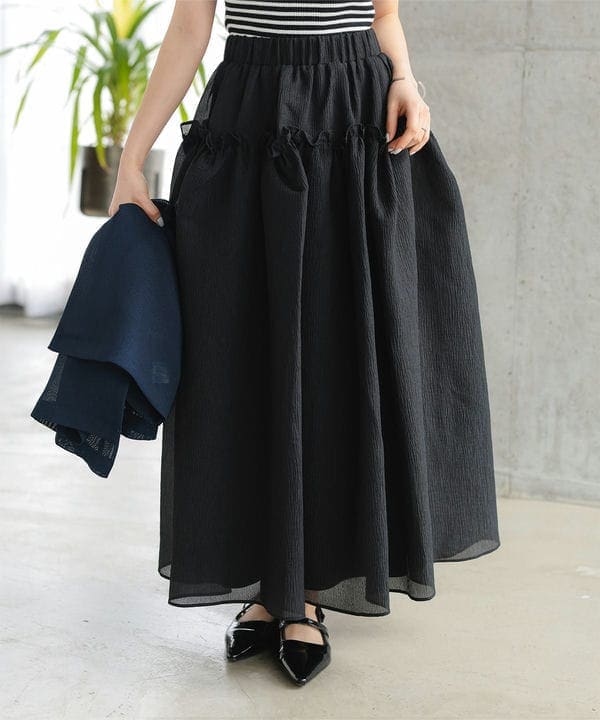 Petitle / プチレ ] ラウンドギャザー切り替えロングスカート
