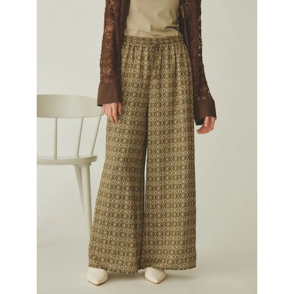 繊細な総柄が目を惹く、リラックス感のあるイージーパンツ。