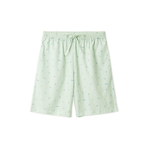 爽やかなブルーの小花柄とロゴを組み合わせた、総柄プリントの布帛シリーズです。ワンマイルのお出かけにもおすすめの、ベーシックなデザインのハーフパンツ。両脇と右後ろにポケット付きで、お手持ちのTシャツ等に合わせて幅広く着回せるデザインです。色はミントとネイビーの2色をご用意。同シリーズのシャツと合わせたり、フラワーワンポイントTシャツや同時期に展開する裏毛シリーズとの組み合わせもおすすめです。
