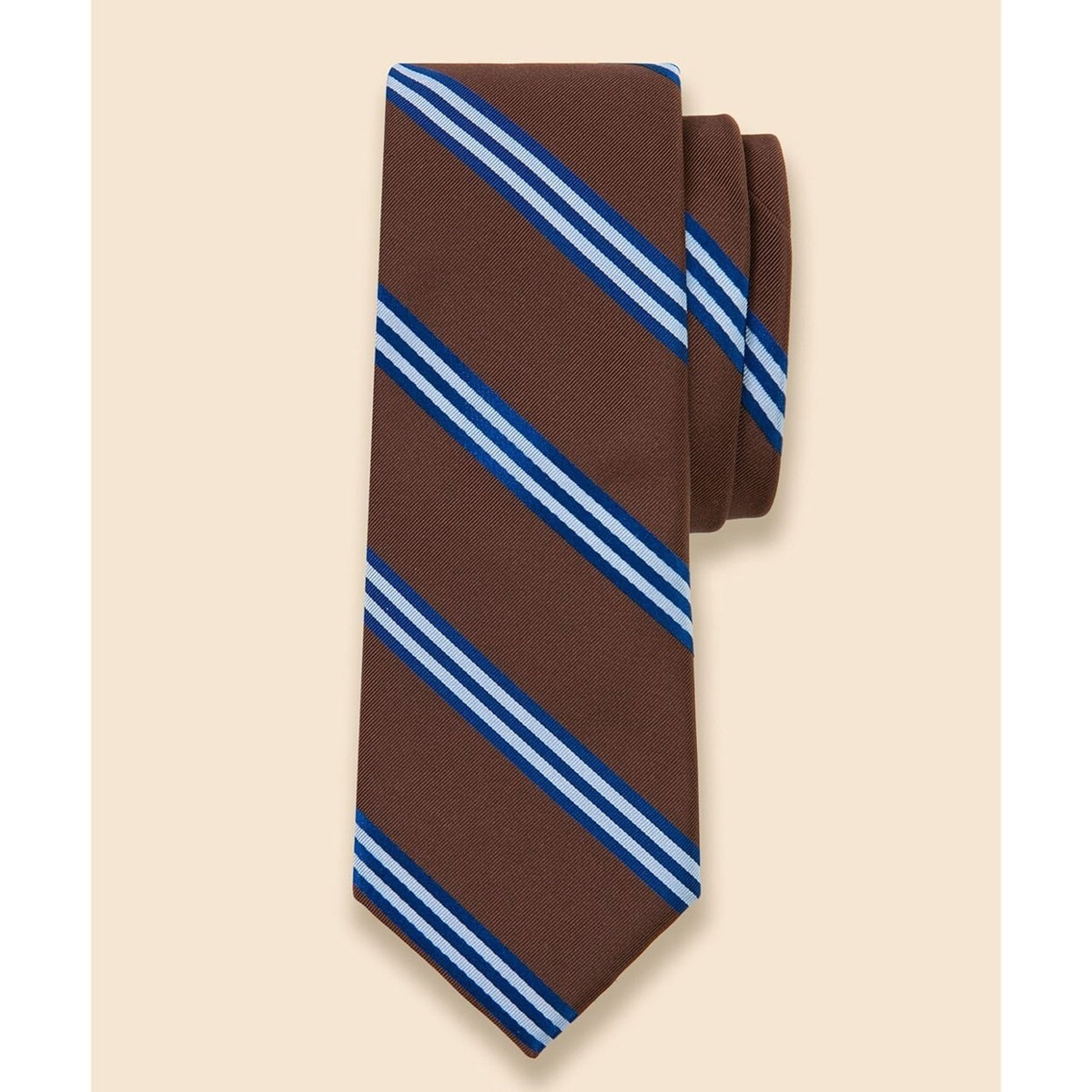イタリアのテキスタイルメーカー、Fermo Fossati社の生地を使用し、日本国内で丁寧に縫製しました。サテン織りのリッチな光沢が、象徴的なBB#1ストライプを一層引き立てます。ビジネスシーンから、休日のジャケットスタイルまで幅広くお使いいただける一本です。ネイビーブレザーとのコーディネートもおすすめです。