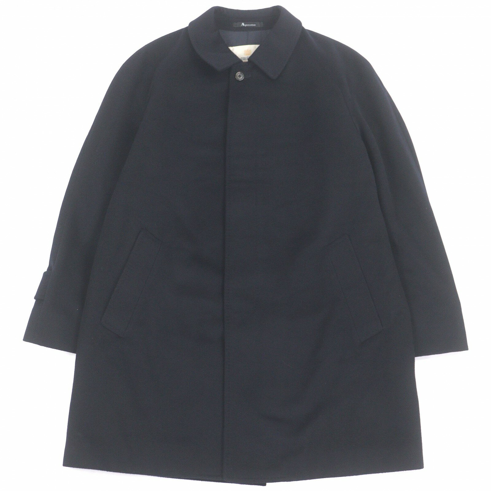 極美品□Aquascutum LONDON アクアスキュータムロンドン カシミヤ100% フライフロント チェスターコート ブラック 38 日本製 正規品 メンズ【中古】