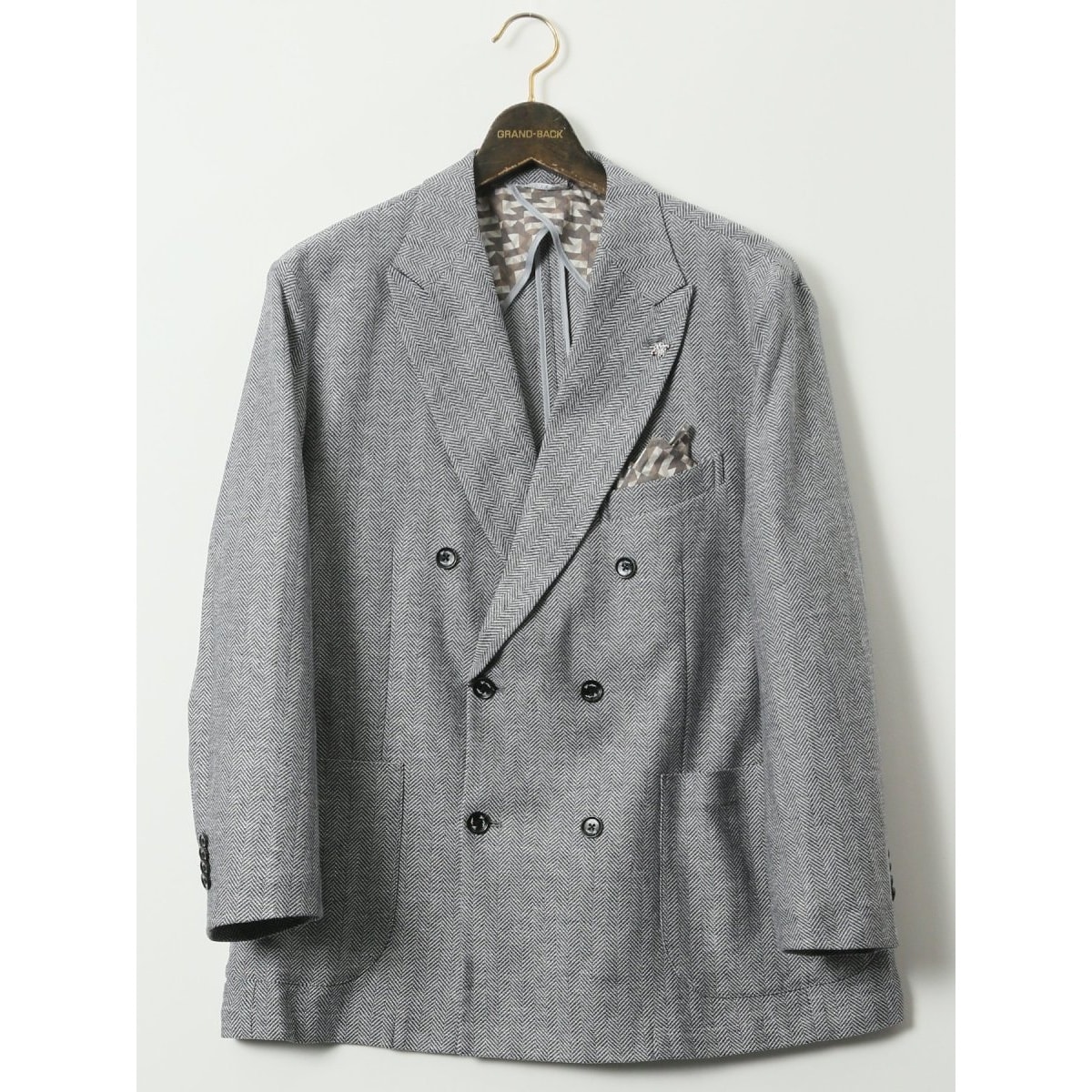 綿麻 ヘリンボン ダブルジャケット(セットアップ可能)