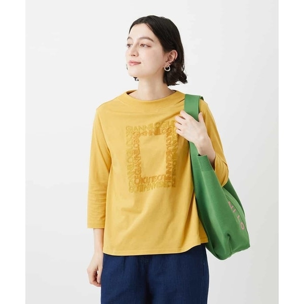 素材の自体のナチュラルな光沢感とつるっとした表面感のある天竺カットソーを身頃に使用したセミロングプルオーバーです。胸元にはロゴをあしらった刺繍加工をスクエア調にあしらいオリジナリティを表現しています。衿ぐり切り替え部分は糸は同じで編み方を変えた素材を異素材使いして変化をつけています。