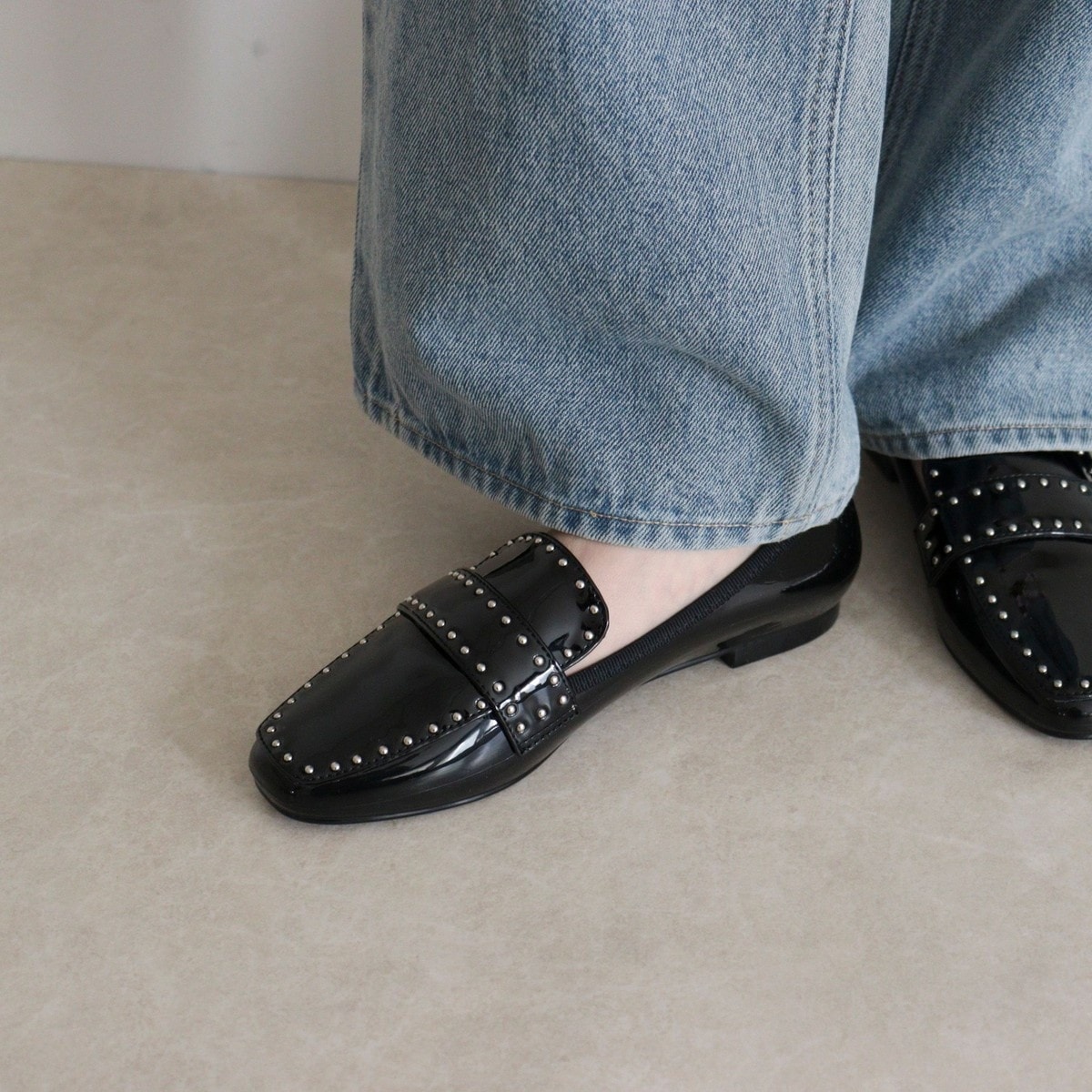 ・ミニサイズのスタッズをエナメル調のアッパーに贅沢に散りばめ、控えめながらも上品な輝きでコーディネートのアクセントに