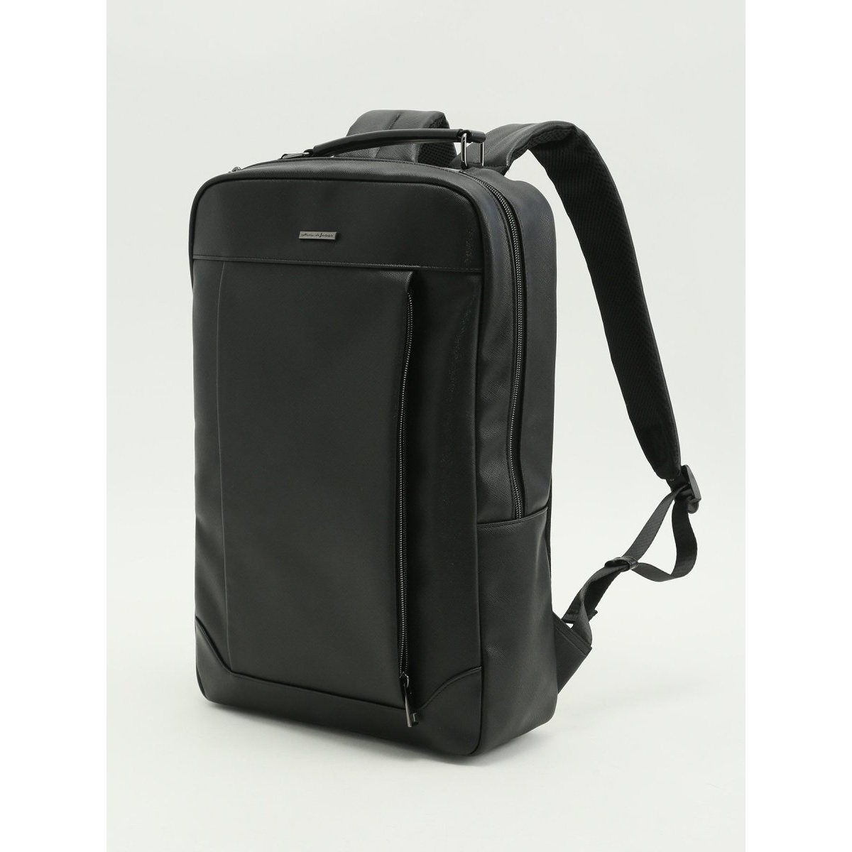 スーツやジャケパンにも似合う、スマートなデザインのバックパックです。メイン収納にはPCやタブレットの持ち運びに安心のクッション入りポケットを装備。フロントにも大き目な縦型のファスナーポケット付きです。手持ちが出来るように、しっかりとしたハンドルを取り付けています。電車の中での前持ち時にも邪魔になりにくいソフトな仕上げと、背面は通気性に優れたメッシュ素材で蒸れにくく長時間の使用も快適です。