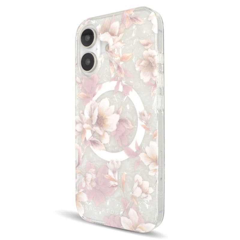 透明感のあるシェルの上に花柄プリントを重ね、iPhone本体のお色ともマッチするようにやさしく浮かび上がるようなデザインとなっています。