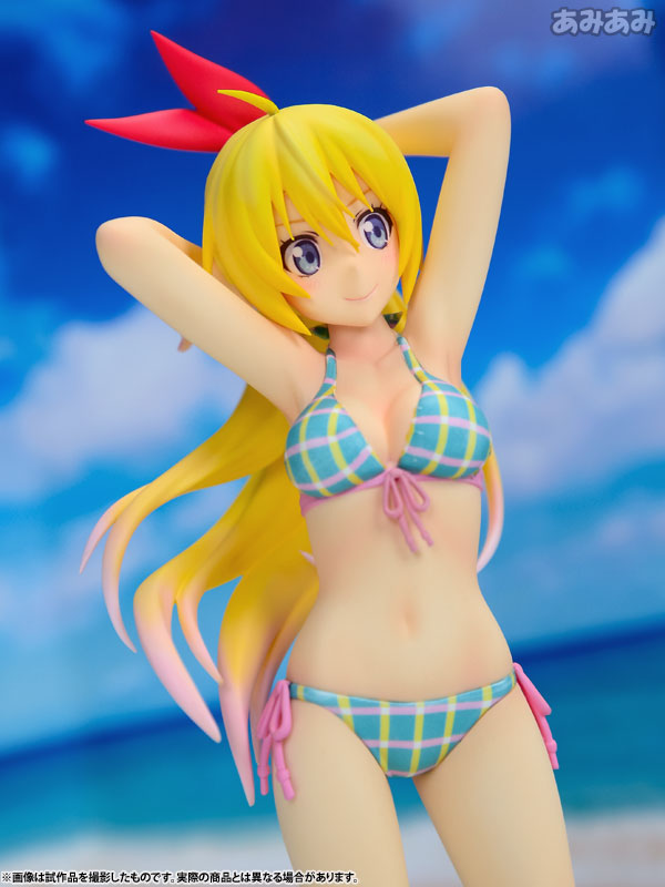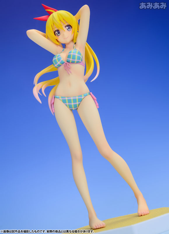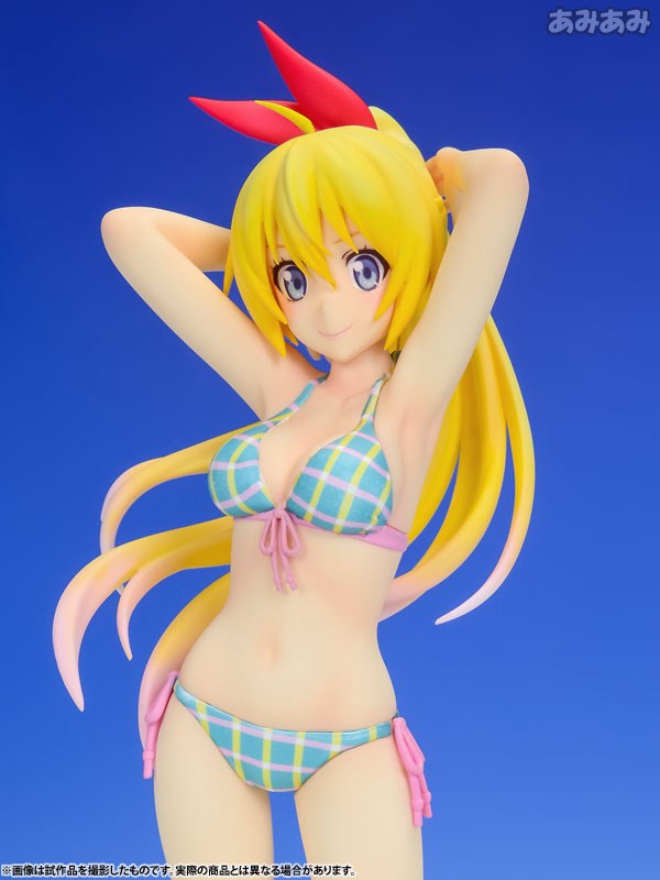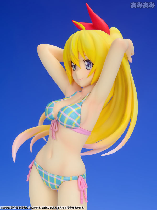 運動神経バツグン・成績優秀だけど短気でケンカっ早いところもある千棘を、アニメ第18話「ウミベデ」での健康的な水着姿で、得意げな笑顔で可愛らしくフィギュア化しました。