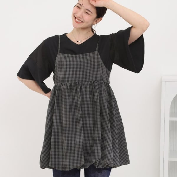 【体型カバー洗濯機可S-LL】お袖ストライプAラインチュニック