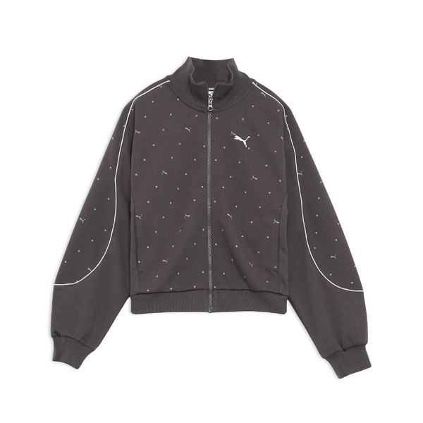 全体にあしらわれたPUMAキャットロゴとドット柄が、シンプルなシルエットに個性と可愛らしさをプラスし、着るだけでスタイルのアクセントに。軽量で柔らかな素材を使用しており、快適な着心地と動きやすさを両立。ジッパー仕様で着脱もスムーズに行え、両サイドのポケットが実用性を高めます。日常のカジュアルスタイルはもちろん、軽い運動やアウトドアシーンでも活躍する、機能性とデザイン性を兼ね備えた万能アイテムです。同コレクションのパンツ【品番: 690175】と合わせてセットアップコーデもおすすめです。