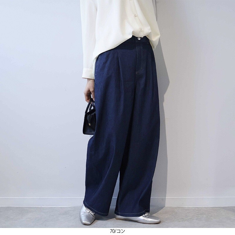 【大きいサイズ】ライトデニムワイドパンツ