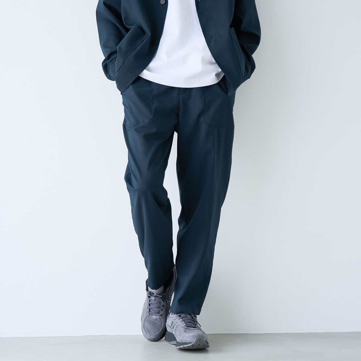 〇同シリーズのジャケットとのセットアップ対応で、行事やスマートカジュアルにも活躍。